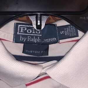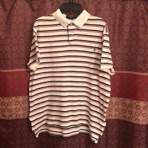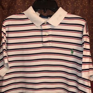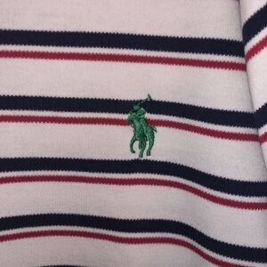 Red white and blue striped polo shirt. Size small. Green polo horse.