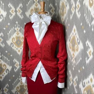 Ralph Lauren Red Tussah Silk Cable-Knit Cardigan Sweater