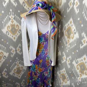 Ralph Lauren Resort Collection Purple Silk Watercolor Floral Midi Dress