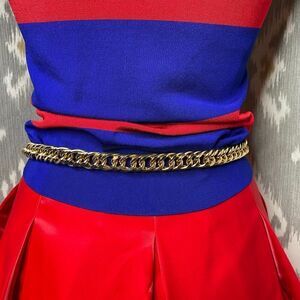 You'll look like you stepped right off the runway in this Ralph Lauren Black Label ruby red structured pouf skirt, in an incredibly lustrous and gently reflective silk-satin. Subtly tapered silhouette, creating a chic bubble shape. Flattering inverted pleating throughout, side on-seam pockets, invisible side zip, hook-and-eye closure, sweet organza ruffle hem, fully lined, hidden hoop at hem for structure. Wonderful flirty special occasion skirt, perfect for all seasons. Whether with a crisp white blouse, cashmere cable knit, or even a simple tee, all will work wonderfully with this sweetheart of a skirt. Very gently worn, no signs of wear, see pics. Flat approx:
