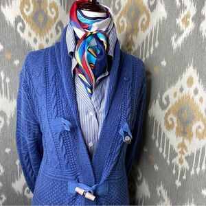 Ralph Lauren Sun Fade Blue Cotton Nautical Inspired Toggle Cardigan Sweater