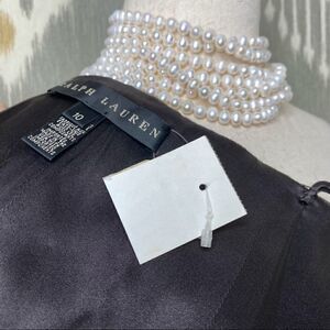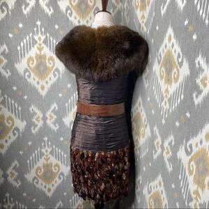 Ralph Lauren Vintage Brown Ruched Silk Taffeta Pheasant Feather Cocktail Dress