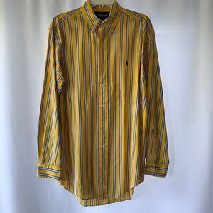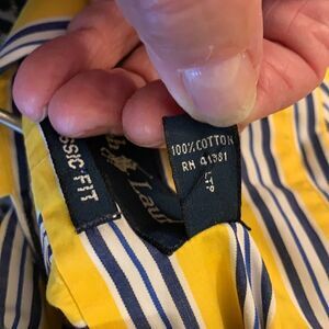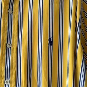 Ralph Lauren yellow, navy and white button up longsleeve shirt classic fit. The size is medium/15 1/2. Like new condition and smoke free/pet free home