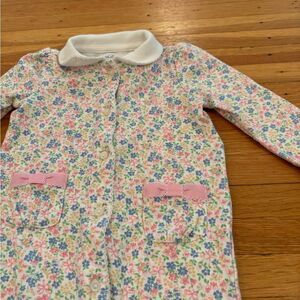 Ralph Lauren white floral jumpsuit. Collared. Snaps. 2 pockets. 4 buttons in front. 95% cotton, 5% elastane. Size 6 months. Great condition!