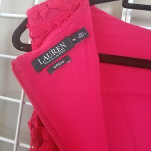 Hot Pink Crochet Lace Overlay Sleeveless Bodycon Sheath Cocktail Dress Ralph Lauren