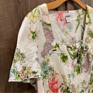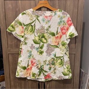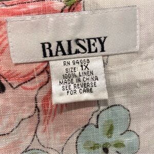 Ralsey 1X Linen Top Multicolor Floral Button-Front Square Neck