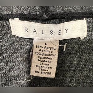 Elevate your wardrobe with this stylish Ralsey cardigan vest in black and grey. The sleeveless design is perfect for layering over a tank top or pairing with jeans. The spandex and acrylic material blend ensures a comfortable fit that will last through multiple wears. This sweater is versatile and can be dressed up or down depending on the occasion. The brand, Ralsey, is known for its quality and attention to detail. Add this cardigan vest to your collection and step out in style. 27 inches pit to pit and 33 inches long. Smoke free home.