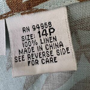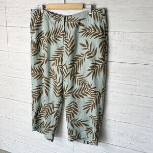 Ralsey Pants Womens Size 14P Teal & Brown Foliage 100% Linen Wide Leg Cropped