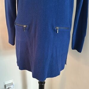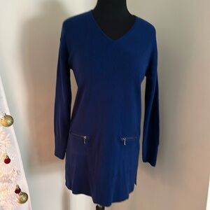 This is a tunic or a dress depending on your height. it is a blue color has 2 zip pockets soft v neck size small