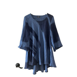 Ralston Blue black Artsy Lagenlook Statement unique asymmetrical gauze Linen Dress Tunic top Sz-L