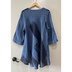 Ralston Blue black Artsy Lagenlook Statement gauze Linen Dress Tunic top Sz-L
