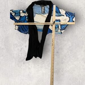 Ralston Kimono Jacket Womens M Blue Abstract Tie Front Boho Artsy Layering
