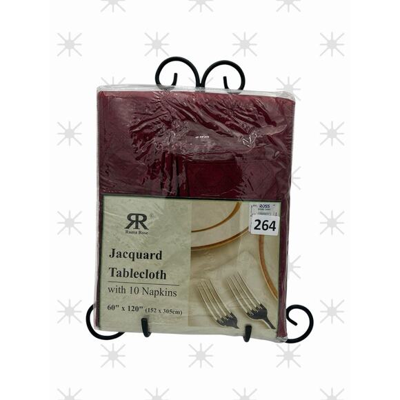 Rama Rose Jacquard Tablecloth W/10 Napkins Elegant Dining 60" x 120” Burgundy