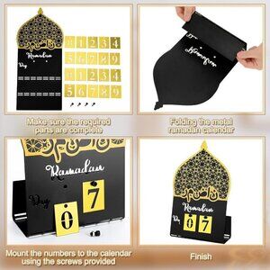 Easy Self Assembly: you will receive a Ramadan countdown calendar, and comes with 2 sets of iron sheets for numbers 1-9 and requires straightforward self assembly; Adjust the numbered date plates effortlessly day by day, making each day of Ramadan special; Stay organized and plan ahead with the countdown to the joyful day of Eid