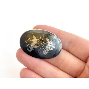 Ramasoon & Mekkala Siam Sterling Silver Vintage Thai Made Nielloware Brooch