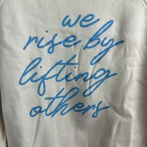 Ramble & Company Sweatshirt Sz Large We Rise By Lifting Others Cream Blue Crewne