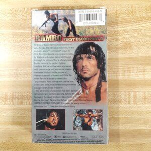 Get ready for an action-packed adventure with Rambo First Blood Part II, featuring Sylvester Stallone and Richard Crenna. This VHS tape is a must-have for fans of the Military/War and Adventure genres, with a rating of R and signal standard of NTSC. Directed by George P. Cosmatos, this cult classic is packed with special features and is not a former rental. The Artisan Home Entertainment studio brings you this exciting movie, perfect for collectors and enthusiasts alike. Don't miss out on the chance to own this piece of cinematic history.