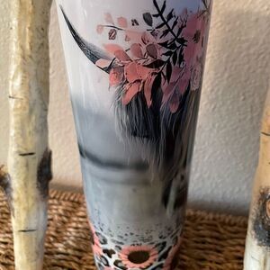 All new! Left over from a cowgirl themed bridal shower. Candle sticks look like branches! The Accountable Coaster set never used. The Rambusch 20 ounce Cow tumbler is metal and beautiful!