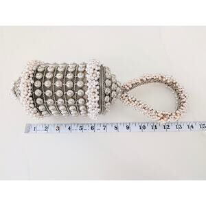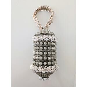 Ramla Cocktail Pearl bag, handmade silver clutch, pearl beaded evening purse, designer embellished handbag, Ramla silver pearl bag, elegant beaded clutch, wedding guest evening bag, cocktail party pearl purse, luxury handmade accessory, sparkling silver beaded bag, formal occasion clutch, handcrafted pearl handbag, unique artisan purse, statement evening accessory, glamorous silver clutch with pearls, Ramla handmade evening bag, chic pearl embellished purse, holiday party clutch, special occasion silver pearl bag.