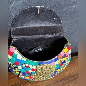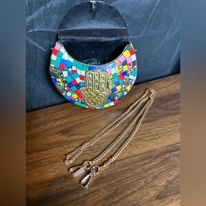 Ramla Colorful Mosaic Clutch with Shoulder Strap and Brass Hamsa