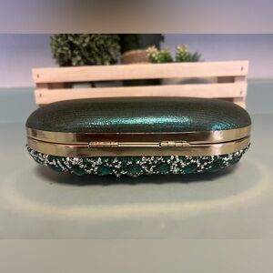 NWOT Ramla Green Crystal Clutch with removable chain and handle