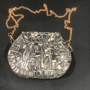 Ramla Moroccan Black and White Geometric Clutch with Gold Chain