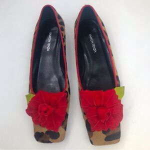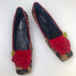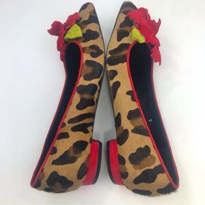 Ramon Tenza Leopard Print Flats with Red Floral Accent