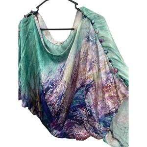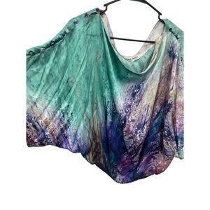 Ramona LaRue By Arianne Top Watercolor Silk Purple Teal Green Size Medium