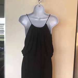 Ramona La Rue Miami halter jumpsuit in black. 100% silk crepe de chine. Wide leg. Drawstring waist. Adjustable tie at neck. Bust 24” waist 19” rise 11” inseam 31” Excellent condition. Size V is voluptuous. Size XL