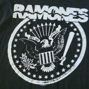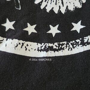 Step into the rebellious spirit of 2006 with this Ramones band tee. Featuring the iconic eagle and "Hey Ho Let's Go" print, this black shirt is a timeless piece for any punk rock enthusiast. Crafted for comfort and durability, it effortlessly combines style and nostalgia, making it a must-have collector's item.