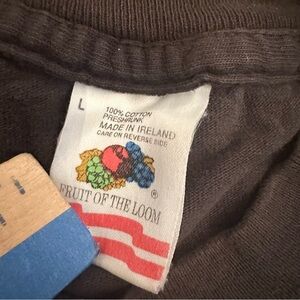 Printed on a Fruit of the Loom made Ireland tagged L Good Vintage condition fade with cracking in graphic. Some stains and small hole /rip See all photos for more details Fast shipping