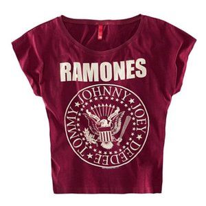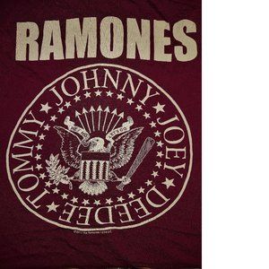 Burgundy soft cotton Tee from Ramones with vintage style Seal and Logo image on the front. 100% cotton.