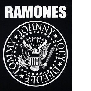 This classic black T-shirt has a front screen featuring the Ramones seal logo. 100% Cotton.