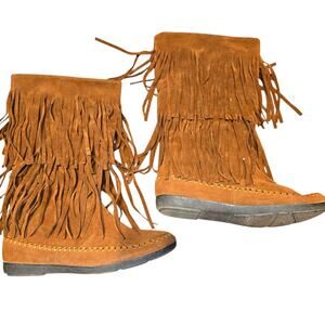 Rampage 7.5 Brown Fringe Women's Pull On Boot 7 1/2 Indian Costume Moccasins
