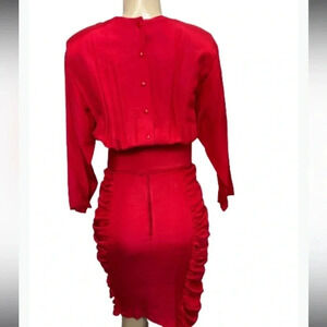 Rampage 80’s VINTAGE DRESS RED MIDI ROUGE MIDI LENGTH LONG SLEEVE