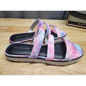 Rampage Ally Strappy Slide Sandals Women's Pink Purple Tie Dye Platform Open Toe