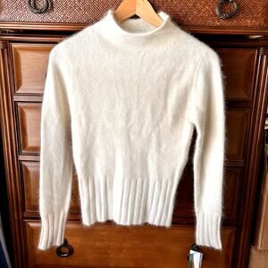 Rampage Angora Lampswool Mock Minimalist white fuzzy Sweater Size M