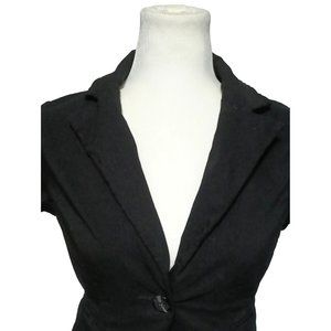 Rampage Black Bolero Shacket Women's Size M Cropped Jacket Ruched Short Cap Sleeve