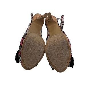 Rampage Black Girasole Floral Bow Ankle Strap Cork Heel Sandals Size 6 Women's