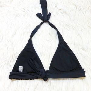 Rampage Black Sequin Halter Bikini Top. Excellent used condition. No size tag, looks to be a small or medium. Laid flat, triangles measure 6" on all sides. Cups are lightly padded. Top only.