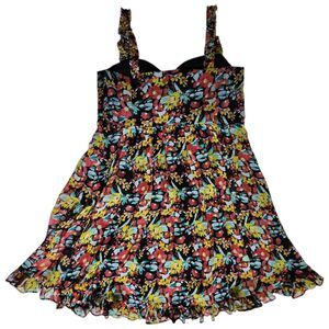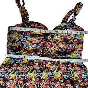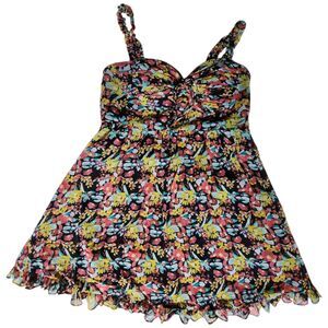 Rampage Black Yellow Pink Floral Sleeveless Sweetheart Babydoll Mini Dress Sz 9