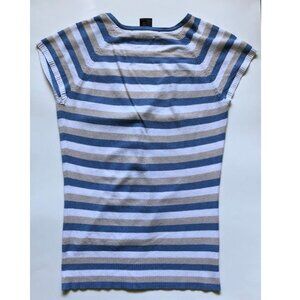 Rampage, Blue, White & Tan Stripe, stretchy, short/cap sleeve top, Size Medium
