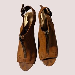 Rampage Brown Wedge Heels with Zipper Size: 10