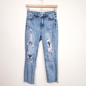Rampage Distressed Womens Jeans Size 27 Vintage Wash Ankle Straight High Rise
