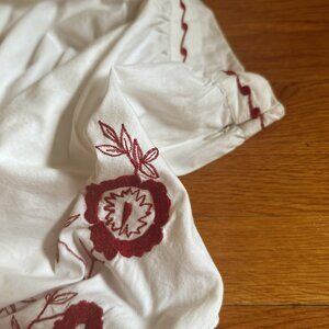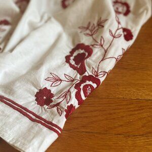 Fall in love with this dreamy Rampage white embroidered skirt featuring gorgeous red floral designs! 🌸 The intricate embroidery work, carefully constructed hidden zipper, and fully lined construction make it both beautiful and comfortable to wear. This versatile piece is calling your name!