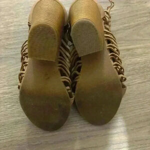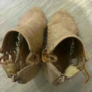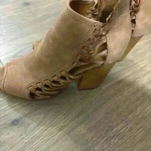 Rampage Faux Leather Brown Vida Block Heel Peep Toe Ankle Boots Sz 7.5 Western