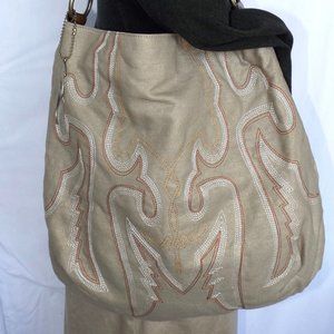Rampage Fifty-Five Bag, Tan Canvas Tote with Embroidery, Like New!