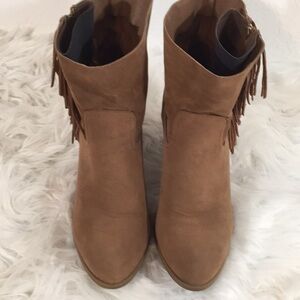 Rampage Frankey Tan 3” Heeled Fringe Ankle Boot 10