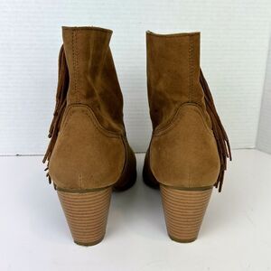 Rampage Frankey Tan Suede Fringe Western Ankle Boots Heeled Cowgirl Boho Shoes 8