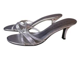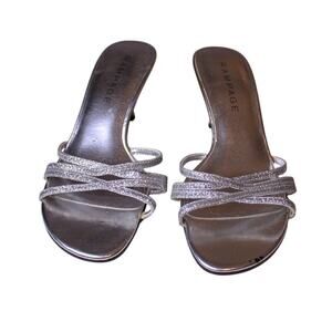 Rampage Frankie Silver Glitter Metallic Slip On High Heel Sandals 9M